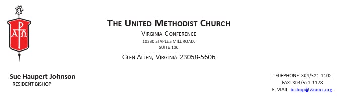 Dear clergy and laity of the Virginia Conference of The United Methodist Church,