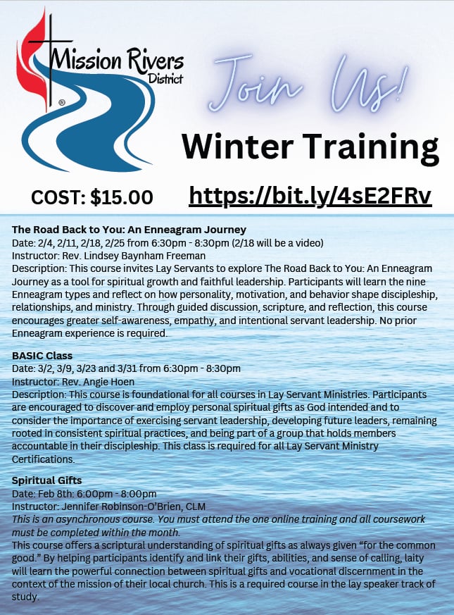 Who should come attend Lay Servant Training? All three of these courses are required for those persons who desire to become a Certified Lay Speaker and they’re helpful for any lay person who is in leadership in the local church. It’s DS Sarah’s goal to have at least one lay person from every church in our district in attendance at either of our 2026 Lay Servant Ministry Training Events on Feb 28 and August 22 (In the Lynchburg area).